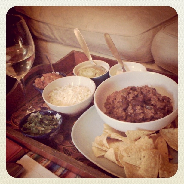 Oooh, this is a good one! A bowl of hot chilli, turned velvety with a couple of squares of 70% cocoa chocolate melted in, crunchy tortillas, melting cheese, fresh coriander and all the Mexican trimmings….. shouldn’t be writing this before dinner, I’m practically dribbling. You’ll love it!