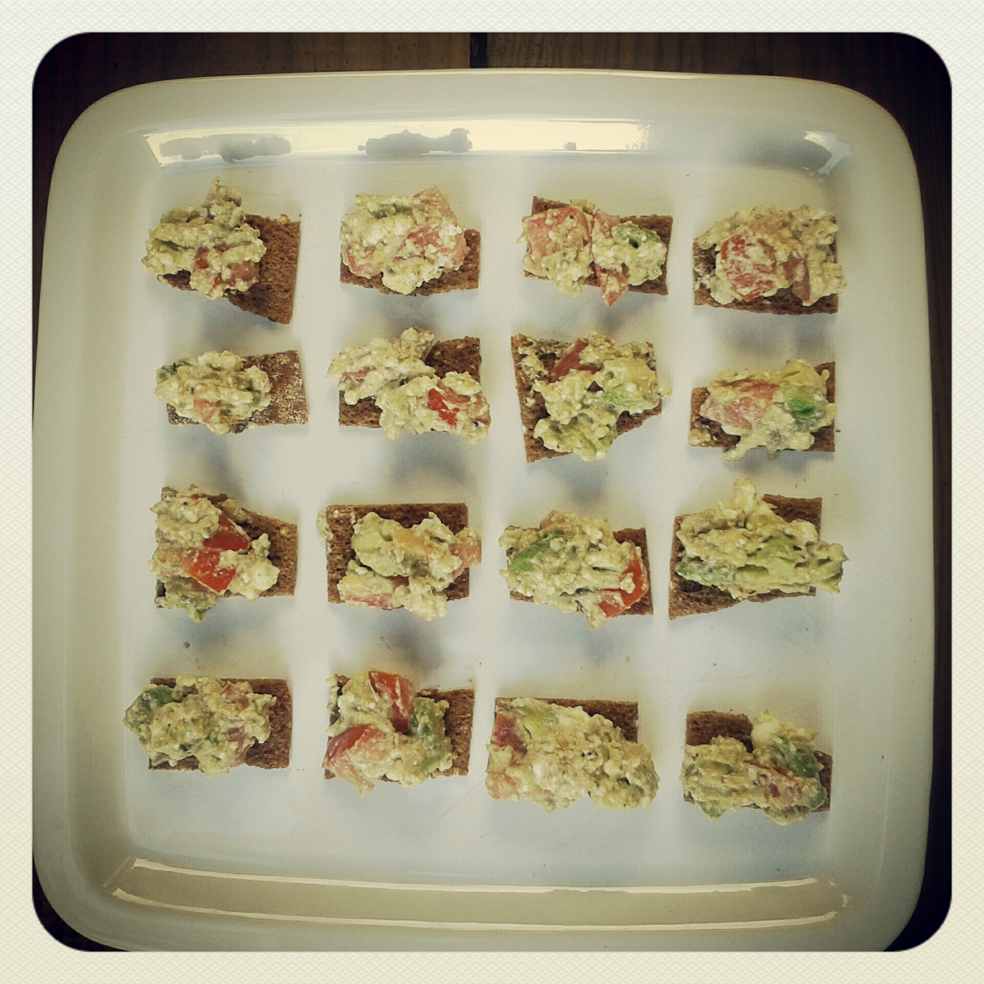 5. place a forkful of the feta and avocado mix onto each piece and place on a plate to serve